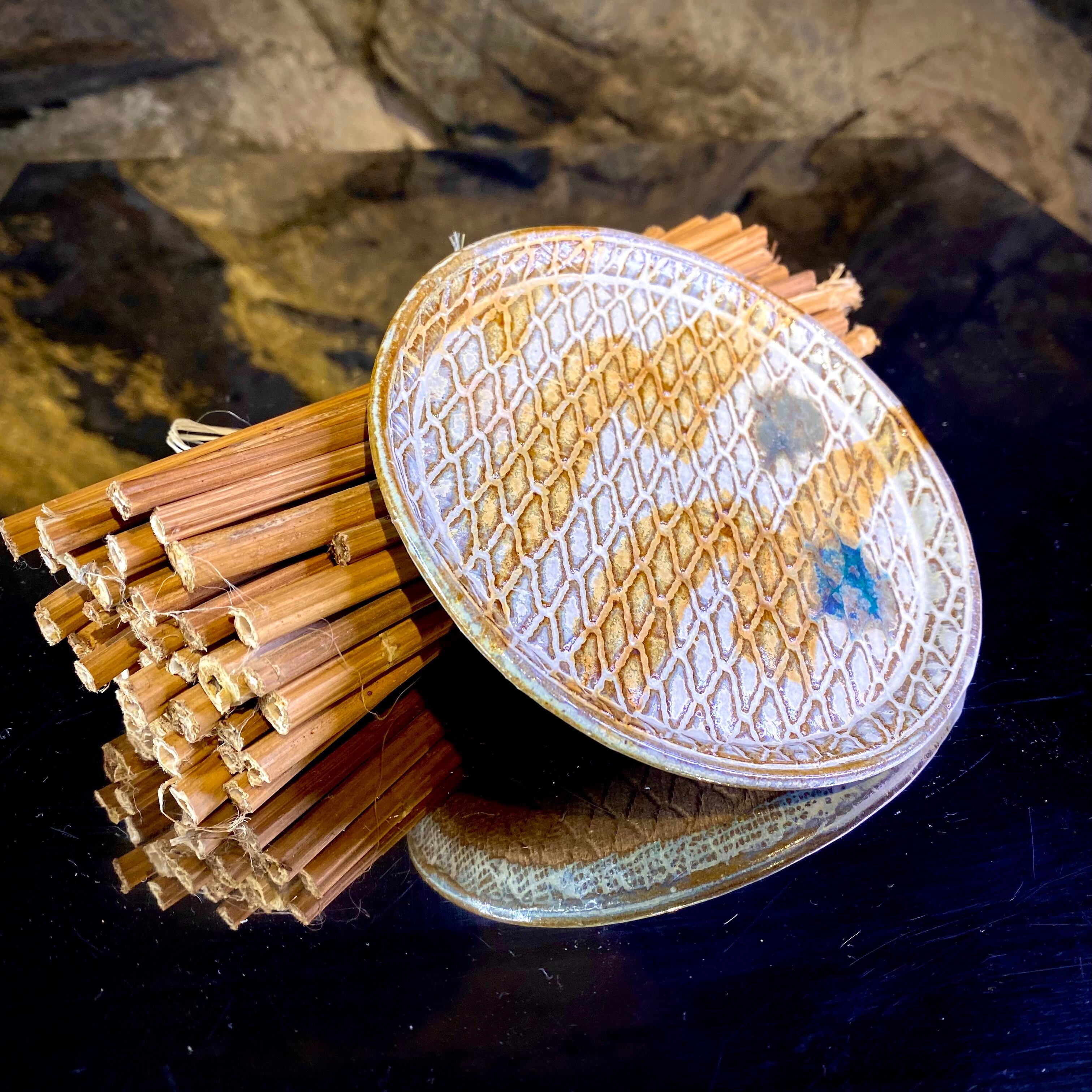 網目柄の縄文のお皿です。